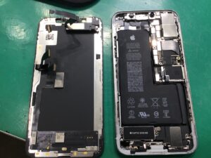 本日は、画面パネルが割れてしまったiPhoneXS(アイフォーン)をお持ち込みいただきました。